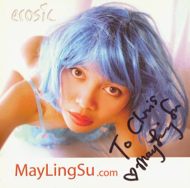 Multi-talented Internet exhibitionist (to sum up with only two words) May Ling Su’s images and videos may leave little to the imagination, but she definitely has an imagination of her own. You’ll see what I mean when you visit her Myspace or any one of her several websites. The main one being here (with links to all the others.) The above photo is from Timothy Greenfield-Sanders’ photo book; XXX: 30 Porn-Star Portraits. Click on it for the NSFW version.