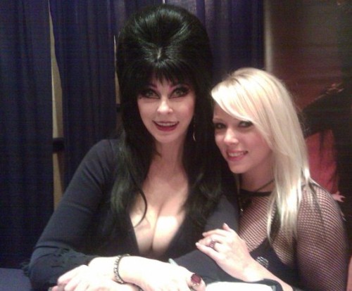 SARAH: I’m a big fan of Cassandra Peterson, who plays Elvira. I grew up watching her on those midnight Movie Macabres, also her movies, and I always knew I wanted to do something like that. She is super beautiful, likes metal and everything evil, and funny. She definitely has been a big inspiration to me! I finally got to meet her a few years ago at Texas Frightmare Weekend. I thanked her for being such a big inspiration to me and she said, “Oh honey, you’re hot!” Yup, that made my life complete! (laughs)