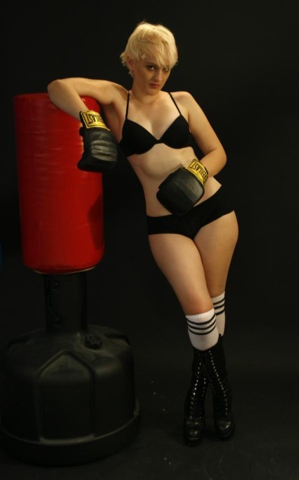 MELANIE: Sadly, it was only for the workout, though I do have a bag at home to work with. I didn’t do any matches, because I have this fear of being hit in the back of my head. I have a childhood friend that hit the back of her head and went deaf. Another friend, stumbled over a hurdle during practice, hit the back of her head and died. So between that and having a glass nose, instead of a glass jaw, I would have had a very short career. I wish I could have. My grandfather was a light weight boxer, but quit because he was vain and didn’t want to keep braking his nose. My trainer was sad about it, though I knocked him out one time, he had the glass jaw. I felt so bad, but the guys at the gym left me alone and quit teasing me.