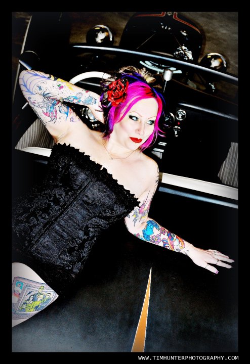 Since she started modeling in 2006, Inkerbella has been featured in some of the most popular pin-up and tattoo magazines in the US. She firmly believes that “you gotta love the skin that you were born in” and the skin she was born in is adorned with many colorful designs, reminiscent of the traditional American tattoo artwork of the 1940s and 50s. Speaking of that time, many of Inkerbella’s photo shoots bring to mind the World War II-era pin-up models that graced the noses of fighter planes and GI footlockers, in addition to being tattooed on the arms of US servicemen.