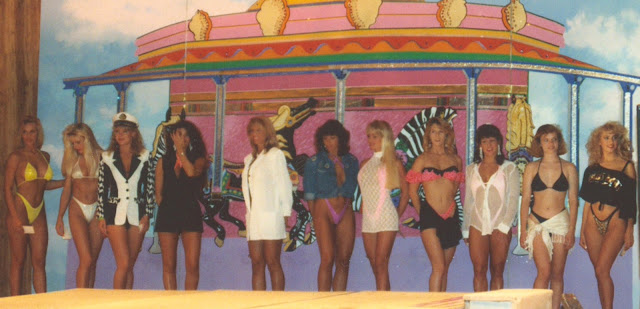 As I look at these photos now, I notice there doesn’t seem to be any real differences between the hair and fashion styles of these ladies vs. those whom would be competing in such contests today. However, I can point out the absence of tattoos and piercings (visible ones, anyway) on these ladies vs. the inked and body jewelry-laden bodies you’d be likely to see in bikini contests these days.
