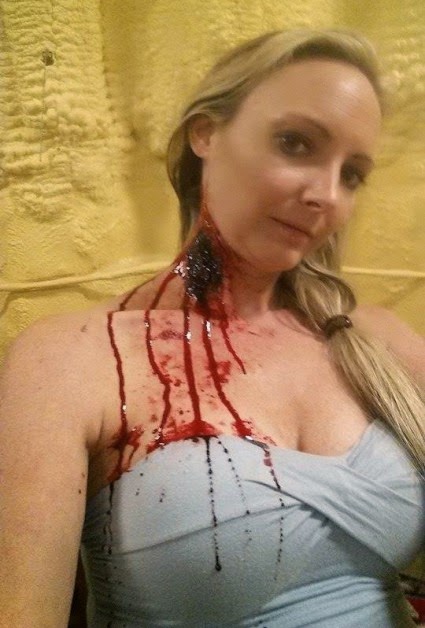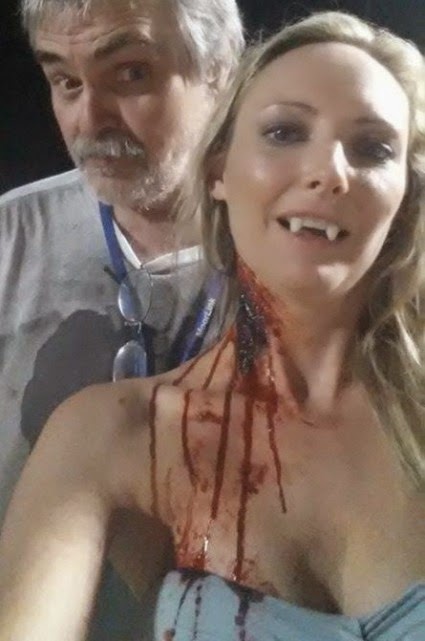 A couple of behind the scenes shots of Carly during the filming of Blood Reunion 2: Madeline. Behind her in the right photo is the film’s director Jim DeVault and Carly’s fangs might be a bit of a spoiler. For more info, check out the film’s official website. Makeup by Mandy Hazelwood Ochs.