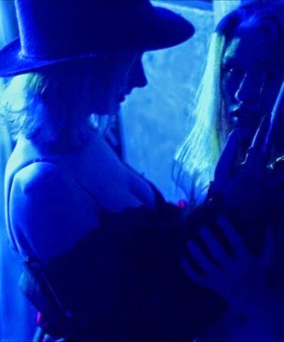 From the “Nightmare” shoot with photographer Jeremy Campbell at Reindeer Manor Abusement [sic] Park in Red Oak, Texas. Carly flashing the famous bladed glove at left and getting close with model Natalie Von Blair at right.