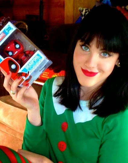 With the Deadpool Pop! figure she received last Christmas. Yes, I believe she’s dressed as an elf but I didn’t ask her about it.