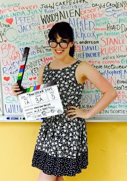 A recently completed solo project of Madison’s, which the above photo is from, is her submission for Team Oscar 2015, an annual competition for young filmmakers, put on by the Academy of Motion Picture Arts and Sciences. If hers is one of the six winning videos selected, you’ll see her on stage as an Oscar Bearer on award night. What follows is my recent interview with the very charming lady, in which she reveals, besides her passion for filmmaking, she also dreams of being a roller derby queen and has some very good taste in music.