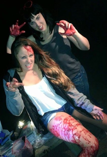 Getting bloody with Kayley Kemp during the filming of Rampage