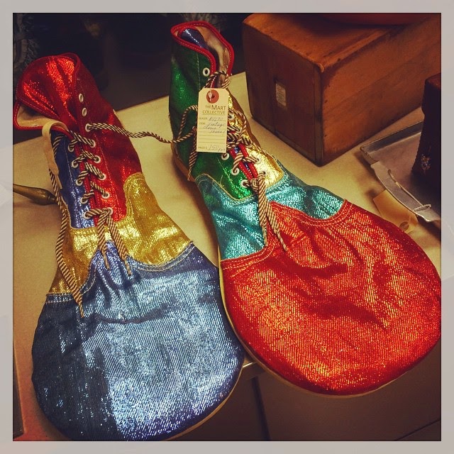 CHRIS: Oh, just one last question: A few weeks ago, you were selling some clown shoes that you said were never worn. I’m curious if you sold them, if so, to whom, and why they were never worn? KIMMIE: (laughs) Well, you know it’s funny, is that I wasn’t actually selling them. I happened to be at this place called the Collective Mart on Lincoln in Venice, and I was wandering around, and I love antique stuff ….any chance I get, I’m going to a thrift store, I’m going to .. CHRIS: Right, right, let’s get to the clown shoes. KIMMIE: (Laughs) Well see, that’s the thing. I was wandering around, and because The Devil’s Carnival is still a big part of my life, everything that’s carnivalesque appeals to me now. (Long story short: Turned out the shoes weren’t being sold by Kimmie, she just took a photo of them and posted it to her Facebook. However, if you are you’re interested in a pair of clown shoes that have never been worn, check Collective Mart in Venice to see if they’re still there.)