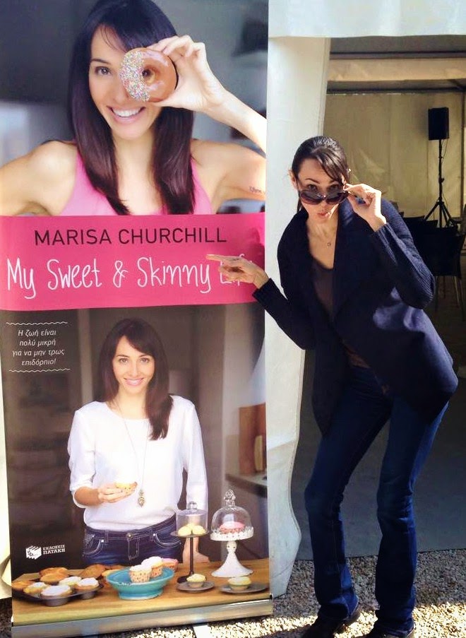 I first contacted Marisa for an interview back in July of 2012, a few months after I caught her on the show Eye on the Bay and making note of her name. She promptly replied, stating she’d be happy to do an interview with me, but it just didn’t pan out. In January of this year, I decided to forward my original e-mail back to her, to see if we could then make an interview happen. She replied, it seemed like it might happen, but after a while, it still didn’t look like it was going to be, so I told her I’d settle for a “one question interview” if she’s just pick one of my questions to answer. So, citing her busy scheduled for not having the time to reply to all of my questions, she seemed to like that idea and answered one of my questions, and, for my patience, she said, answered a second. The above photo of Marisa was taken outside of the Kifissia flower show in northern Athens, Greece last month, where Marisa was on hand to whip up some of her famous Sweet & Skinny desserts for those in attendance.