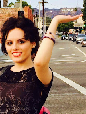 Andreea speaks four languages and tells me she loves to travel, which gives her inspiration for her writings. She was in Paris until the middle of this May and, as of this writing, is back home in Munich. Her travel plans include another trip to the US next year, with Atlanta and San Francisco on her list of cities to visit. The above photo of Andreea on Hollywood’s Sunset Boulevard last June, is courtesy of Andreea herself.