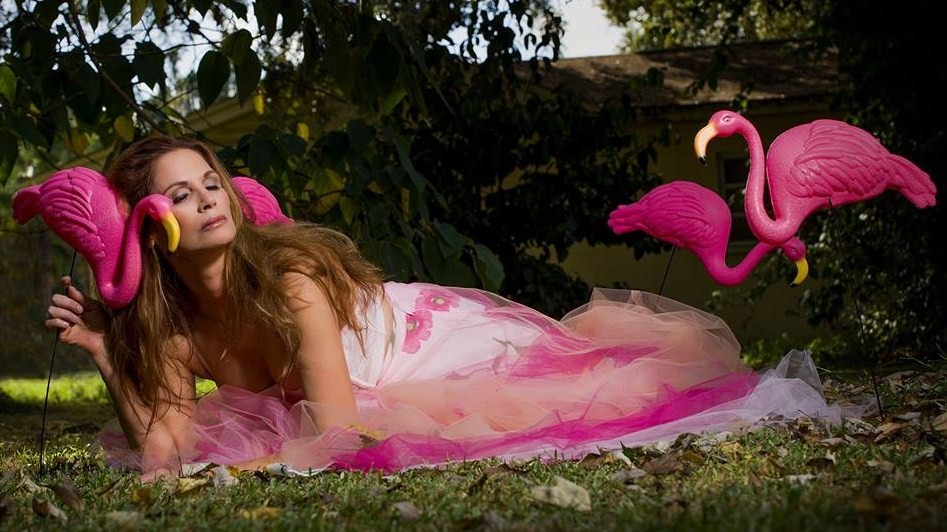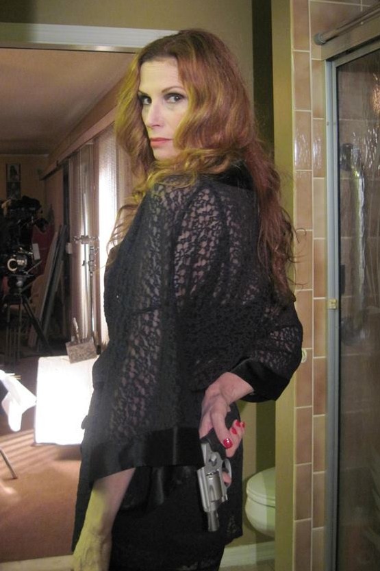 It’s been over three years since actress, model, and (no kidding) Reddi-wip heiress Liane Langford has appeared on these pages. Since my last interview with her in October of 2012, Liane signed with a top San Francisco modeling agency and has done shoots with several notable photographers. She was a Vampirette for Pat Johnson’s Malevolent Magazine shoot, posed with pink flamingos for Mark Pernal in Florida, was a girl with a gun in black lingerie for Lance Miller, and the flaming red muse for Robert Gifford’s above photo illustration.
