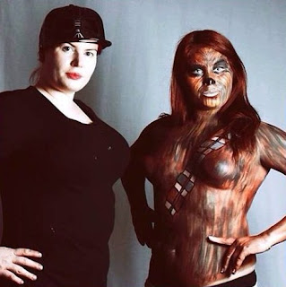 Mel showing off more of Samantha’s work. Left as Lady Deadpool and at