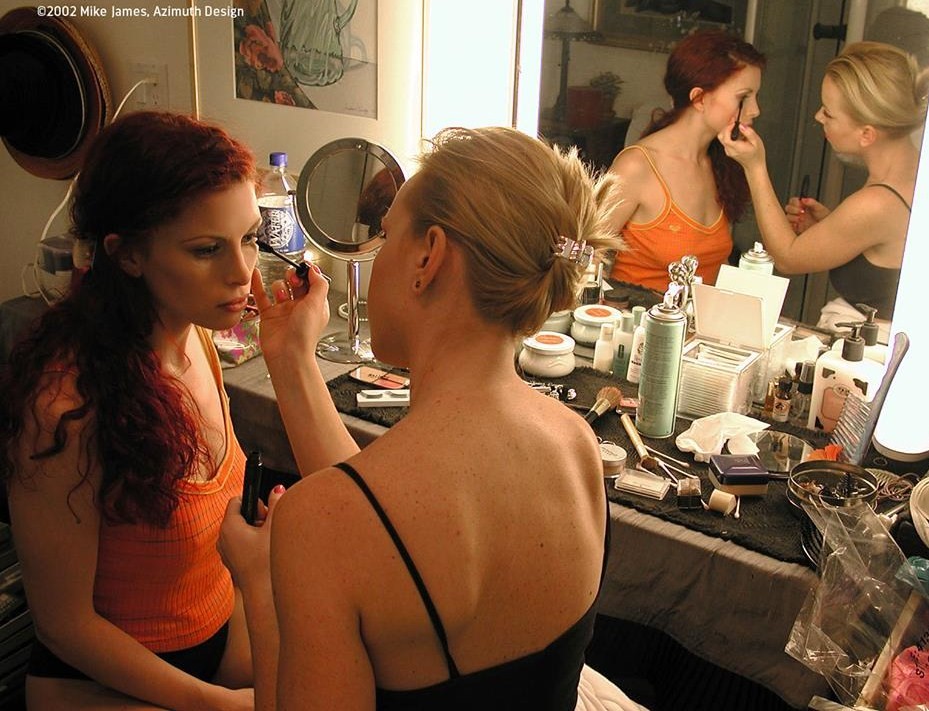 Relaxing on the set with Jasi and helping her with her makeup during 2002 shoots.