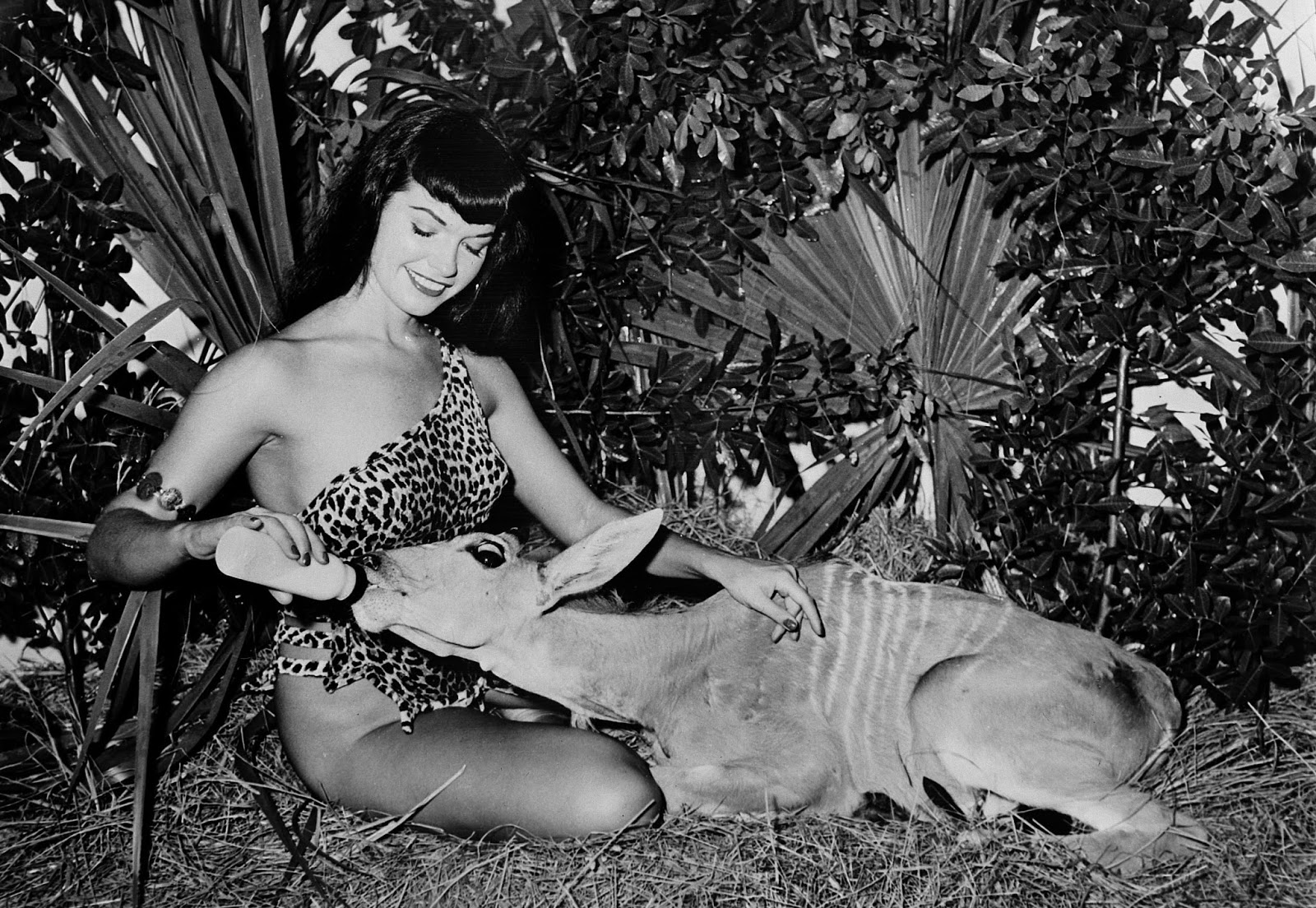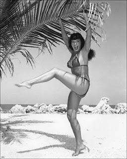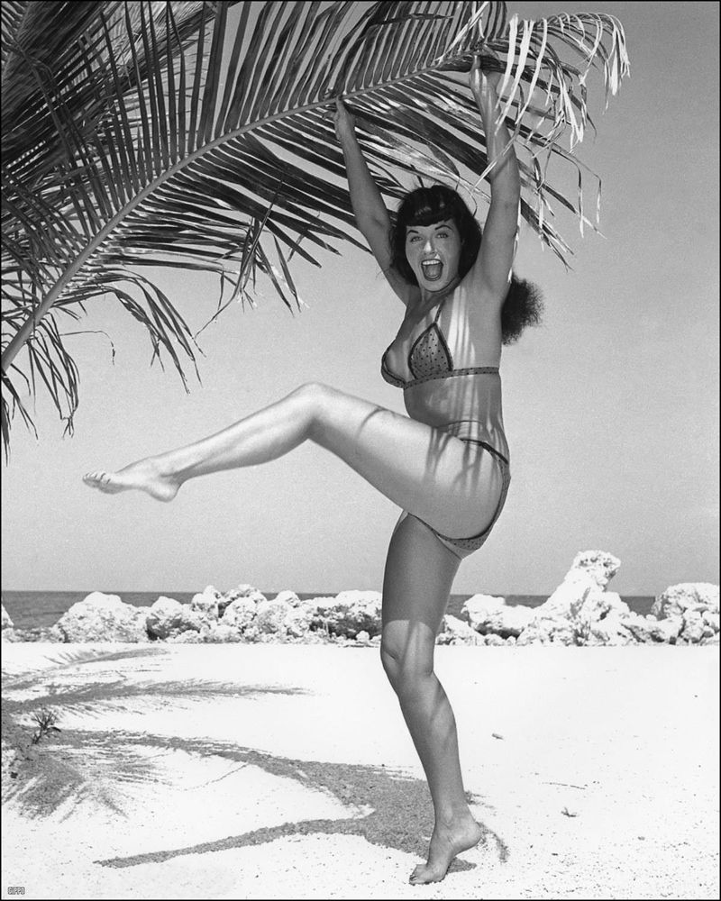 Bettie Page (or Betty Page, 1923-2008) is probably considered the undisputed cheesecake queen. A very prolific magazine, figure and photo club model during the 1950s, seemingly millions of photos were taken of her in just about every situation imaginable. She disappeared from view at decade’s end, reportedly due to an incident involving a stalker, but was re-discovered by pinup enthusiasts in the 1990’s. Today, she’s practically a household name.